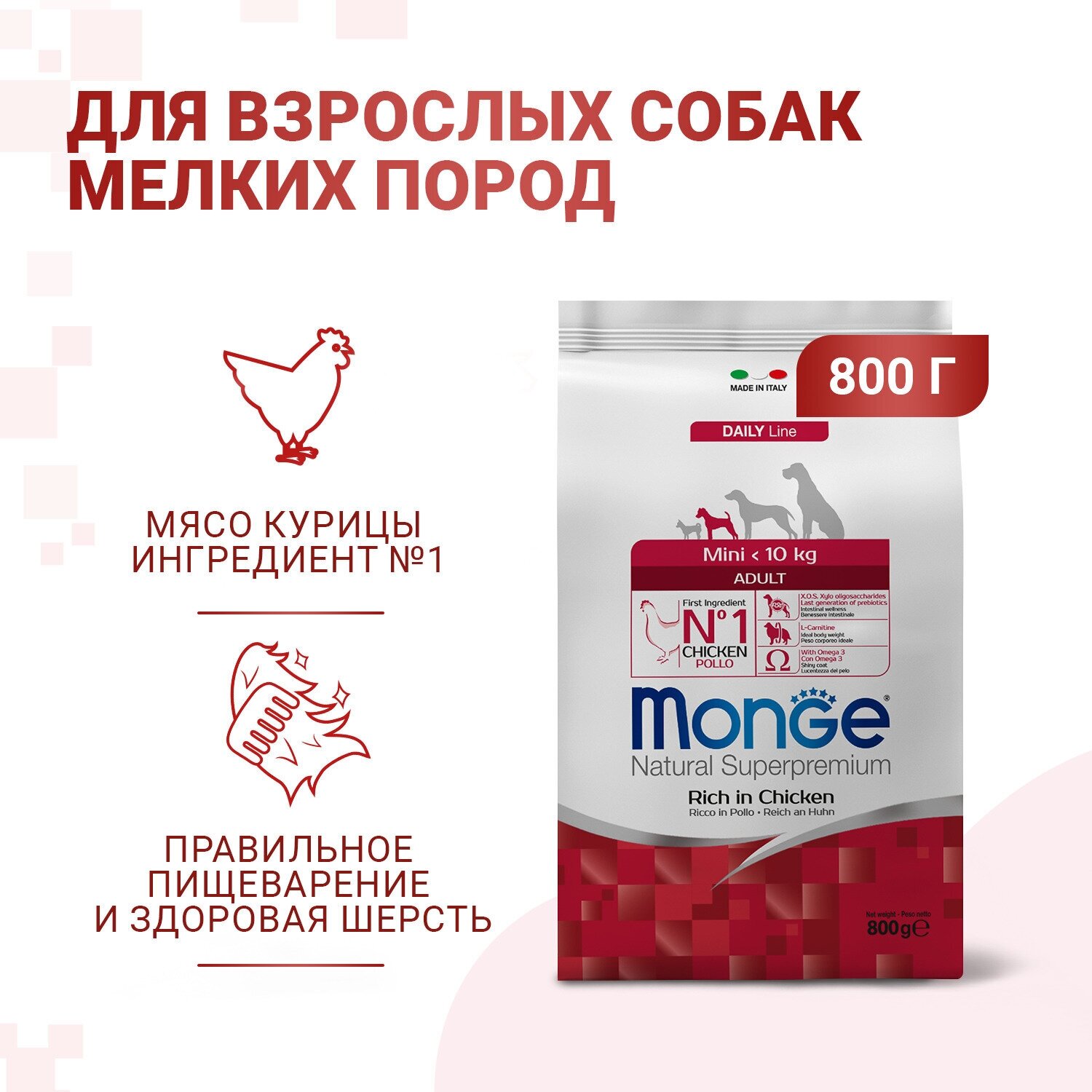 Сухой корм для щенков Monge Daily Line, курица 2 шт. х 800 г (для мелких пород)