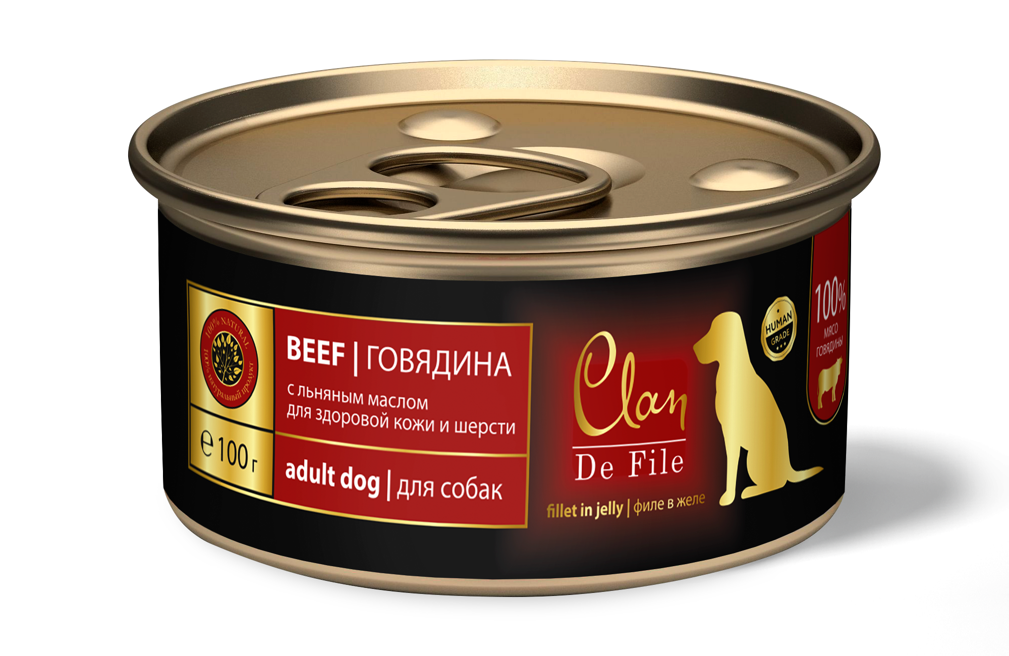 Влажный корм для собак CLAN De File, беззерновой, говядина 12 шт. х 100 г