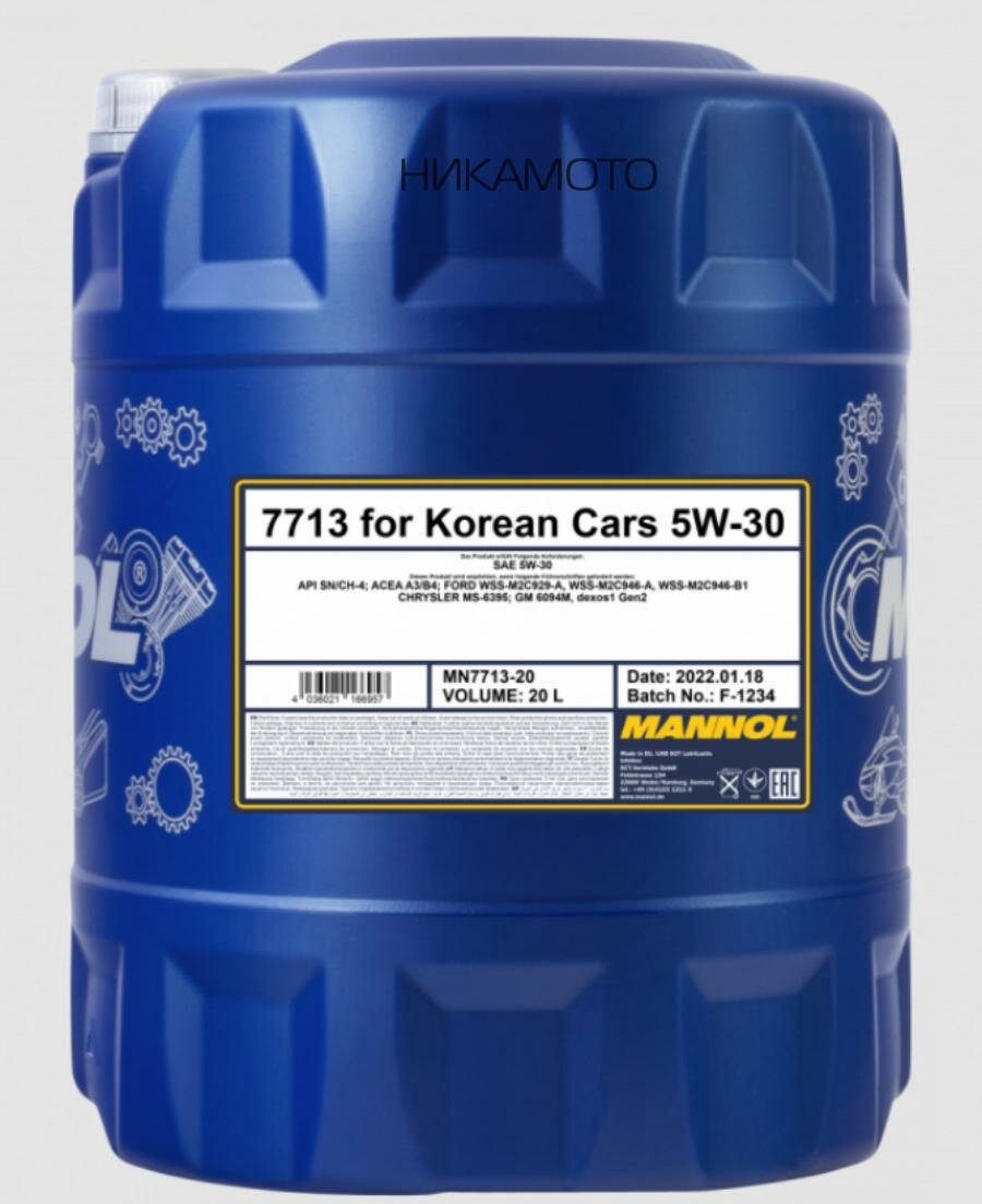 MANNOL 7713-20 Mannol For Korean Cars 5W-30 20 Л. Синтетическое Моторное Масло 5W30
