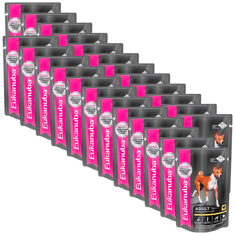 Купить Корм влажный (паучи) Eukanuba Adult Dog для взрослых собак с кусочками курицы в соусе, 100 г х 24 шт