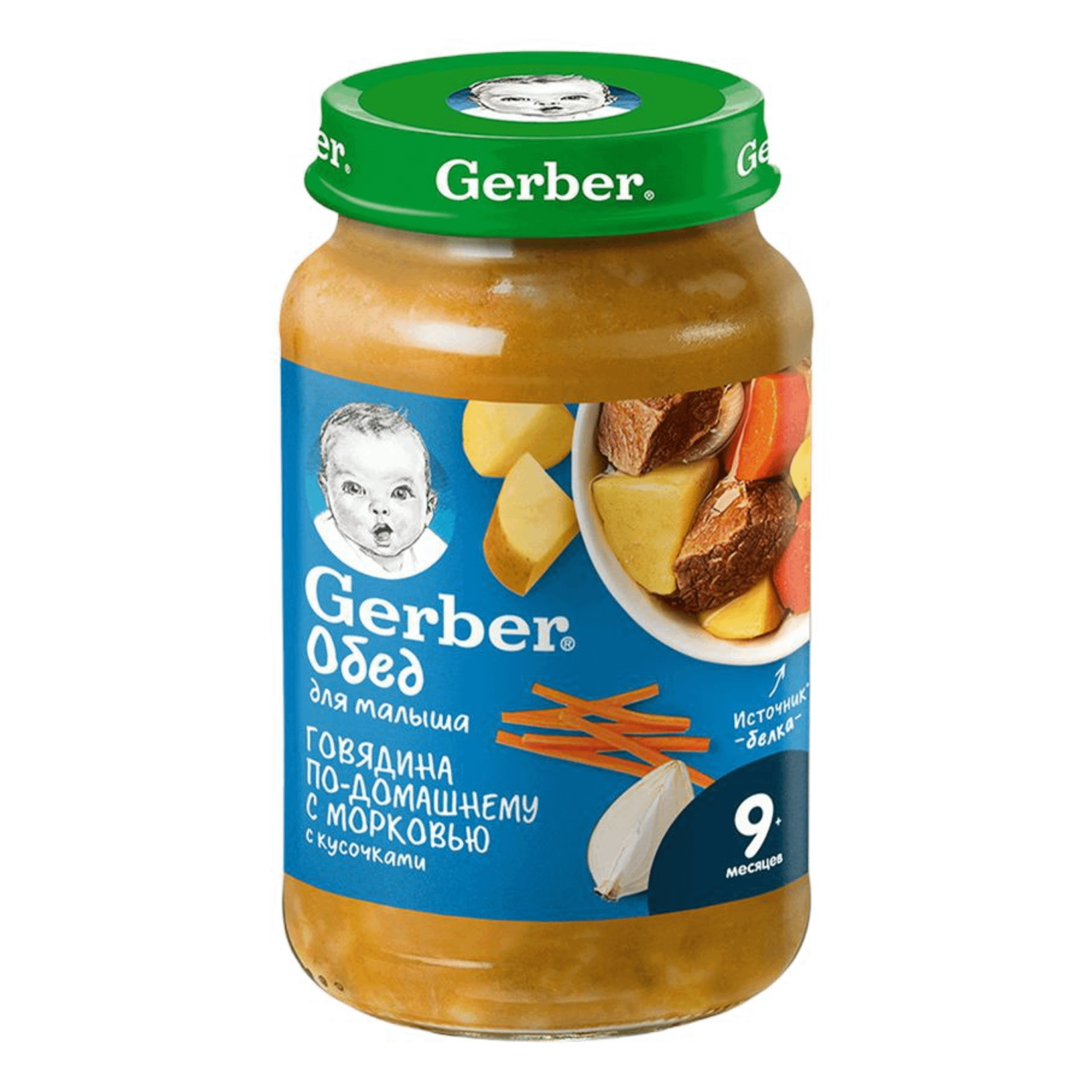 Пюре Говядина по-домашнему с морковью, GERBER, с 9мес, 190 г, детский обед