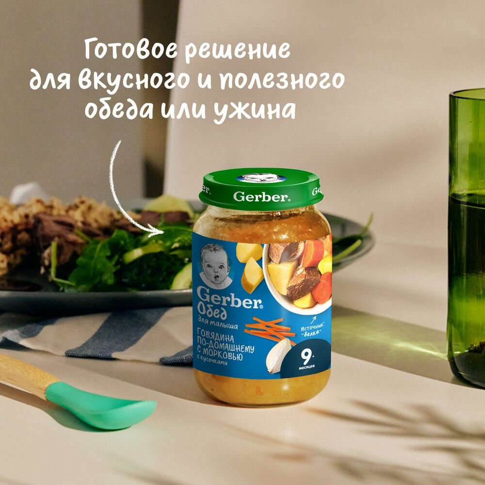 Спайка Gerber пюре Говядина по-домашнему с морковью с 9мес 190г детский обед, 6 шт.
