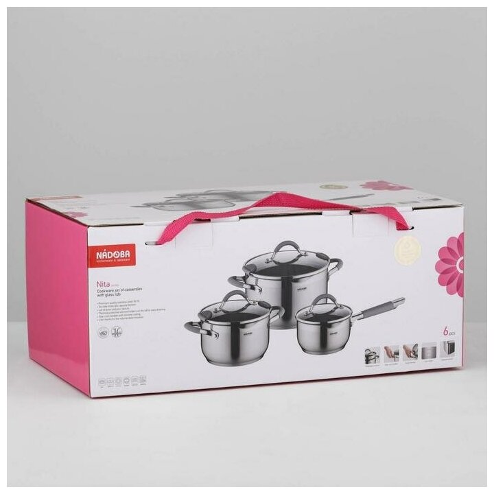 Набор кастрюль Nadoba, серия Nita, со стеклянными крышками, 6 предметов .