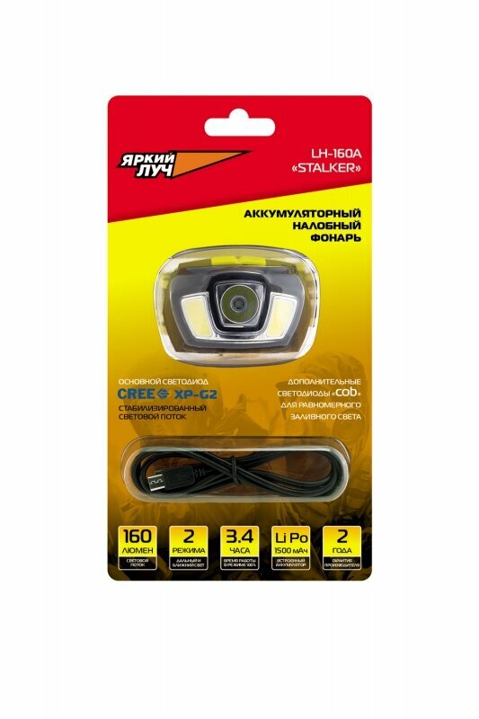 СохранитьЯркий ЛУЧ Фонарь LH-160A "Stalker" налобный CREE XP-G2 160лм + 2 COB, диммер, Li-Po 1500mAh 4606400105855 интересное: