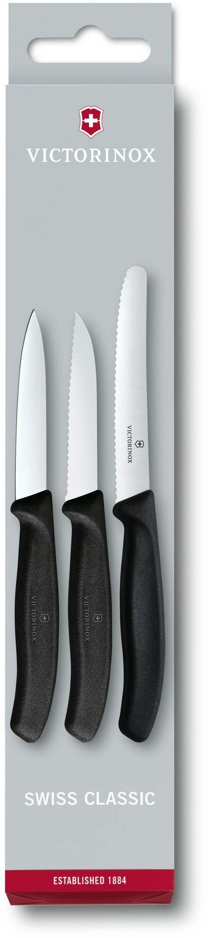 Набор из 3 ножей VICTORINOX 6.7113.3 Swiss Classic: 2 ножа для овощей 8 см, столовый нож 11 см, чёрная ручка