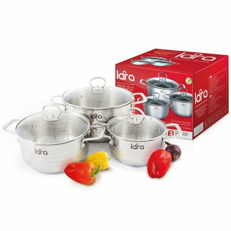 Набор кастрюль LARA Standart LR 02-81 /2,3л+4,5л+5,7л
