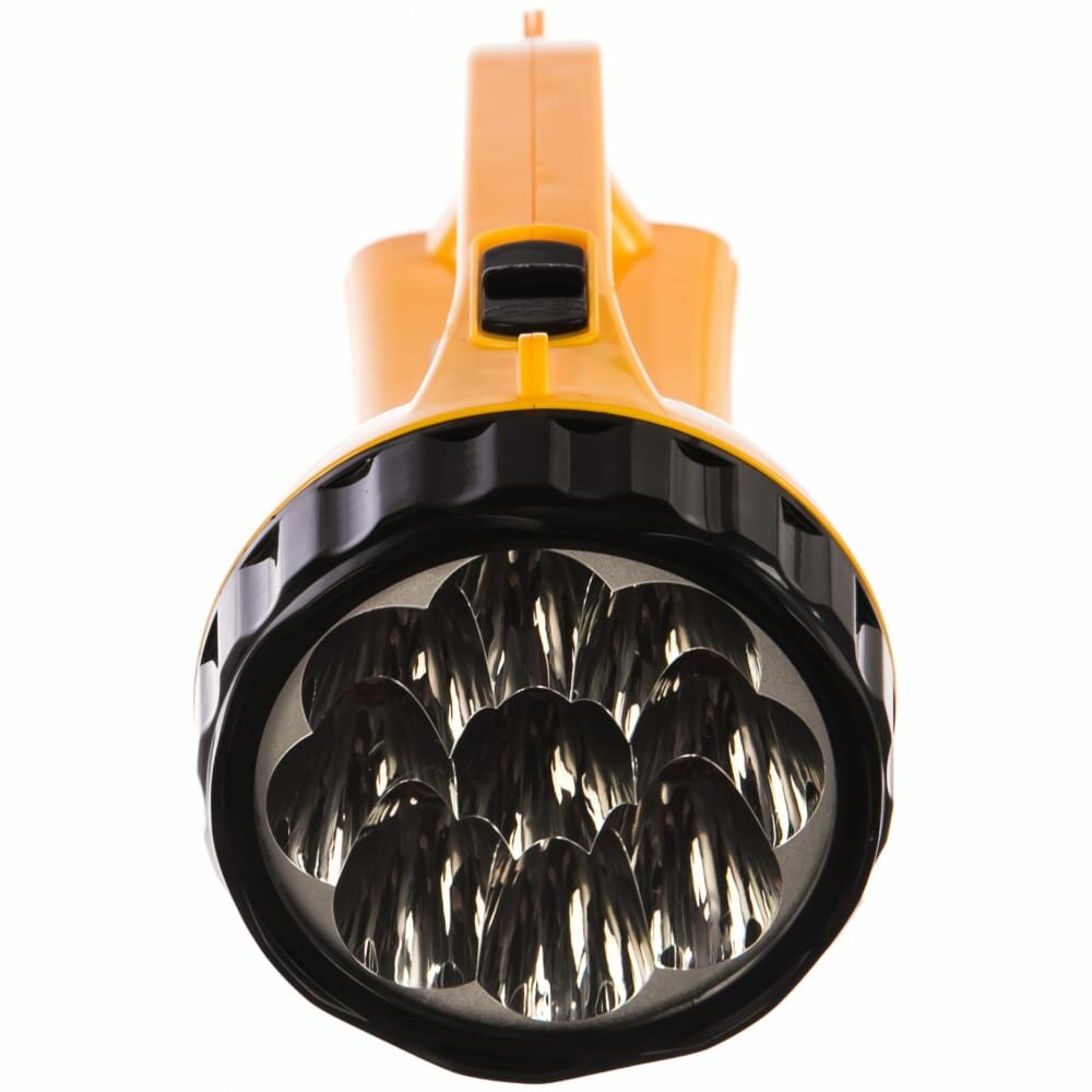LED аккумуляторный фонарь от 220В 9LED (до 40м) два режима пластик IP22 размер D=70х160мм(выдвижная вилка) желтый цвет - LED3816SM (Ultraflash)(код заказа 14783 И)