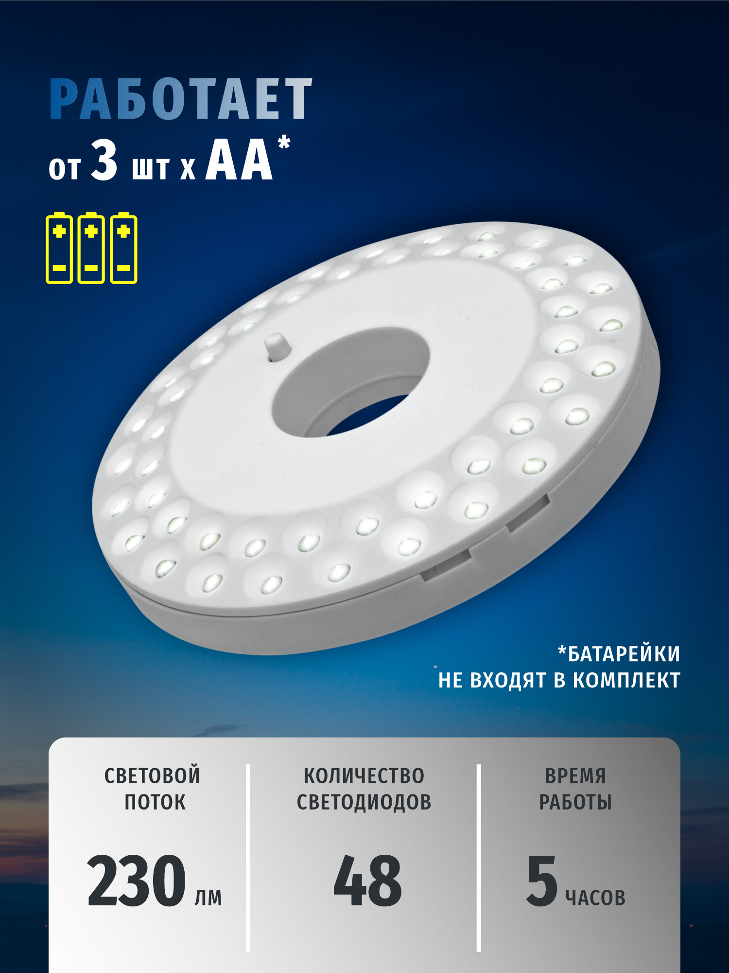 Фонарь кемпинговый Navigator Group Navigator NPT-CA06-3AA круг.48LED, блист.