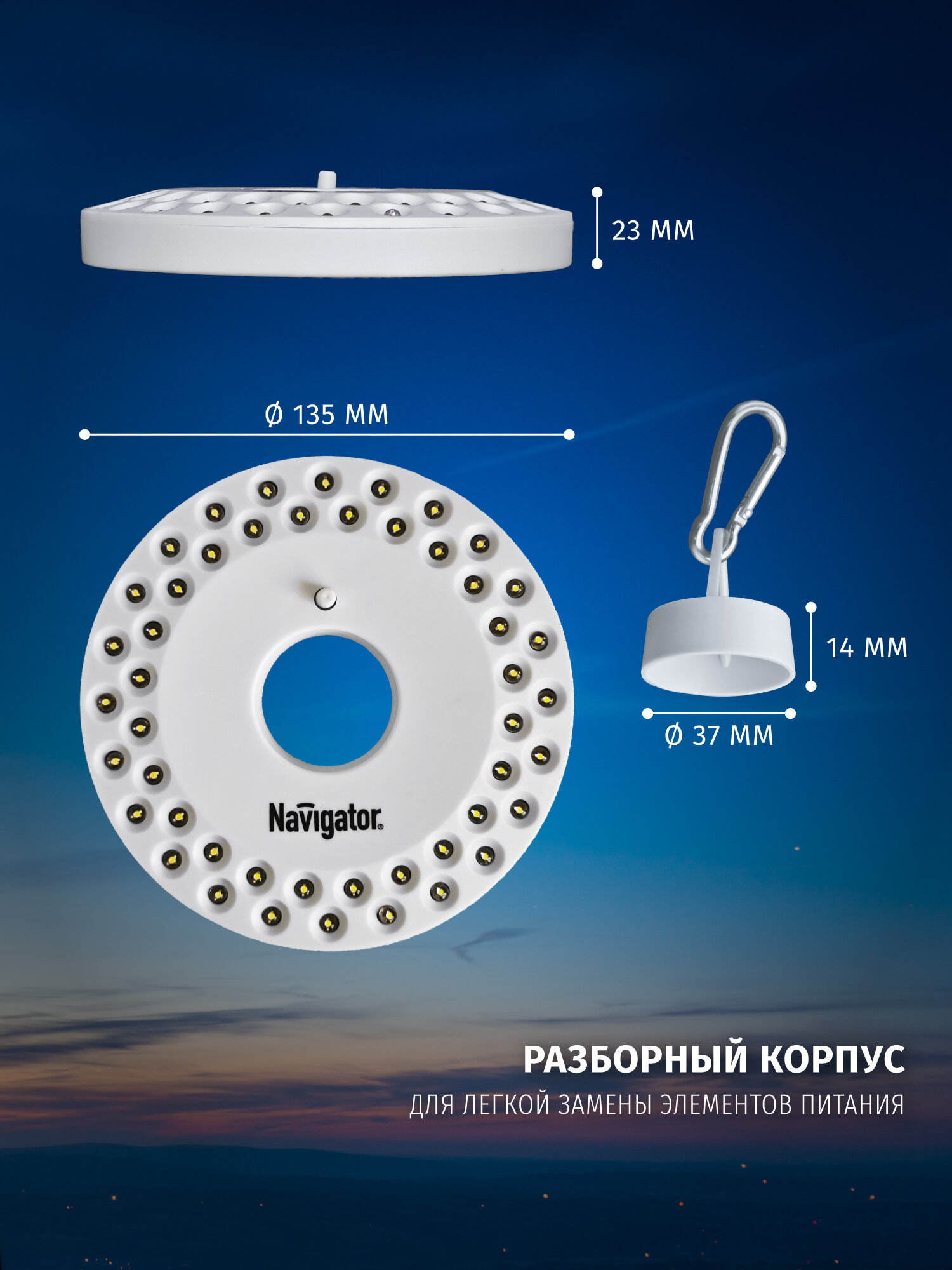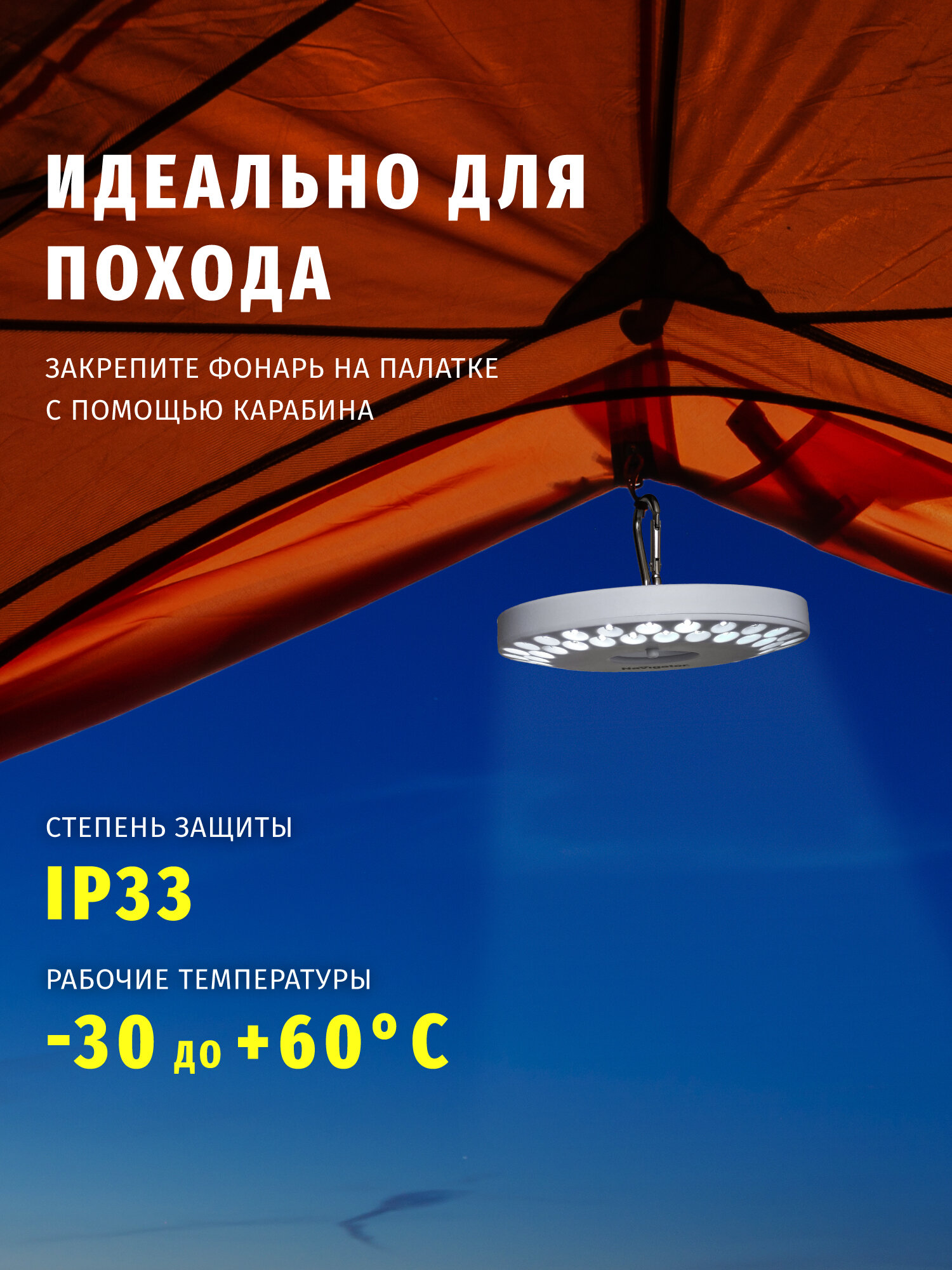 Фонарь кемпинговый с карабином и магнитом 48 светодиодов IP33 Navigator 94948 NTP-CA06-3AA