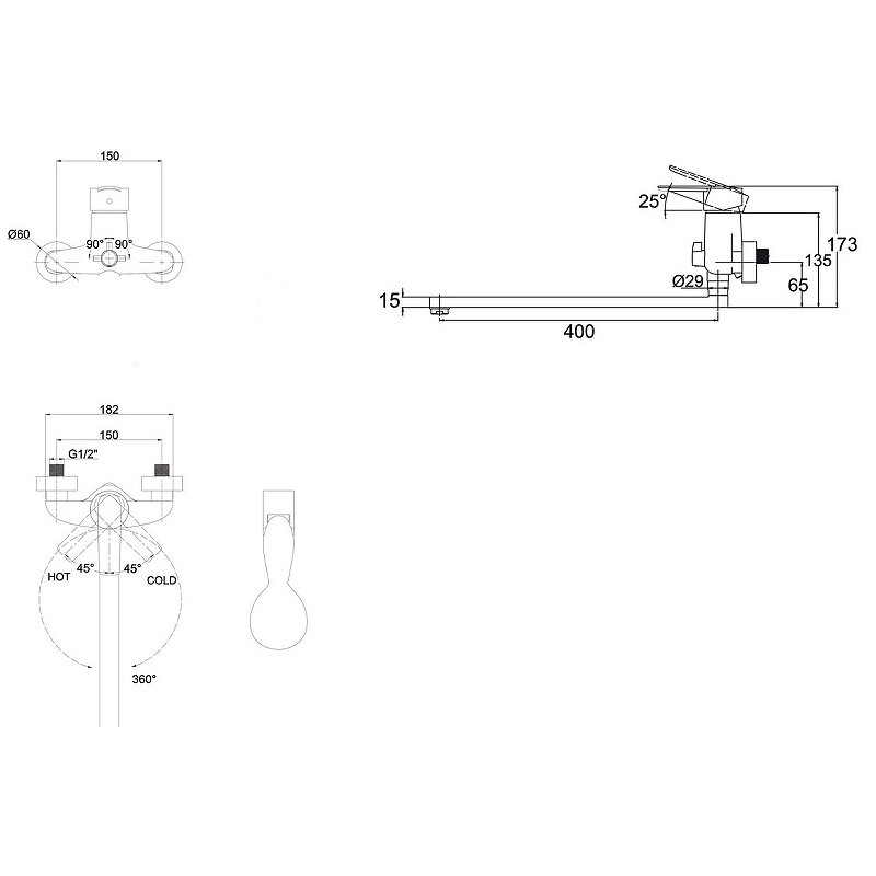 Смеситель для ванны KAISER Orbit Chrome (хром) 20055