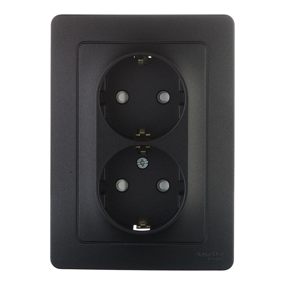 Розетка 2-м СП Blanca 16А IP20 250В с заземл. защ. шторки антрацит | код BLNRS001126 | Schneider Electric (6шт.в упак.)