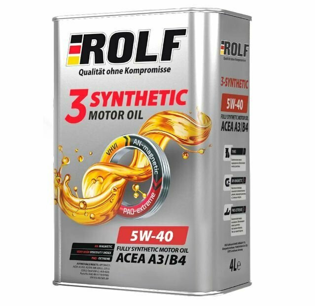 Масло моторное rolf 3-synthenic 5w-40 acea a3/b4 синтетическое 4 л 322551