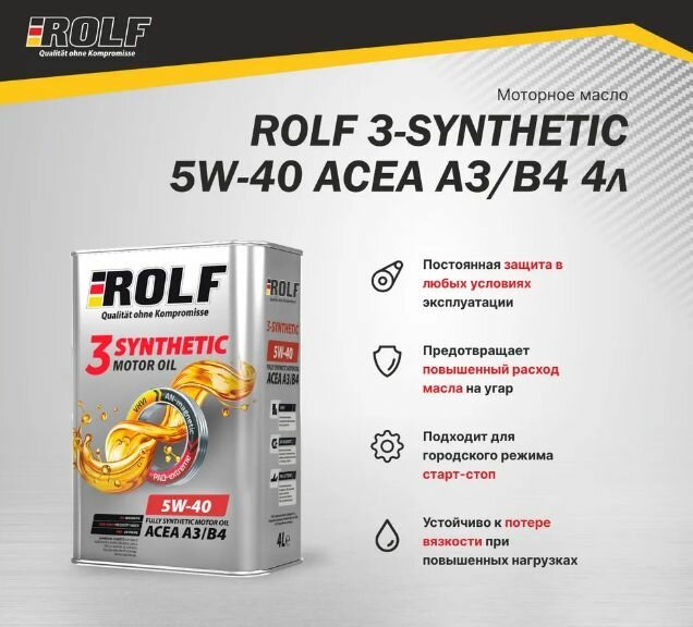 ROLF 322731 Масло моторное синтетическое 3-synthetic 5W40 API SN/CF, ACEA A3/B3/B4 4л 1шт