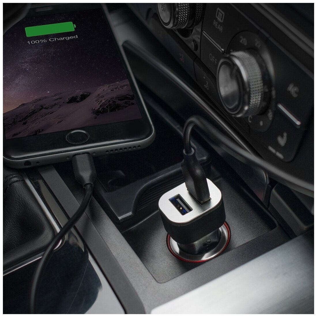 Автомобильное зарядное устройство Deppa 2 USB 2.4А + кабель micro Usb, черный 11283