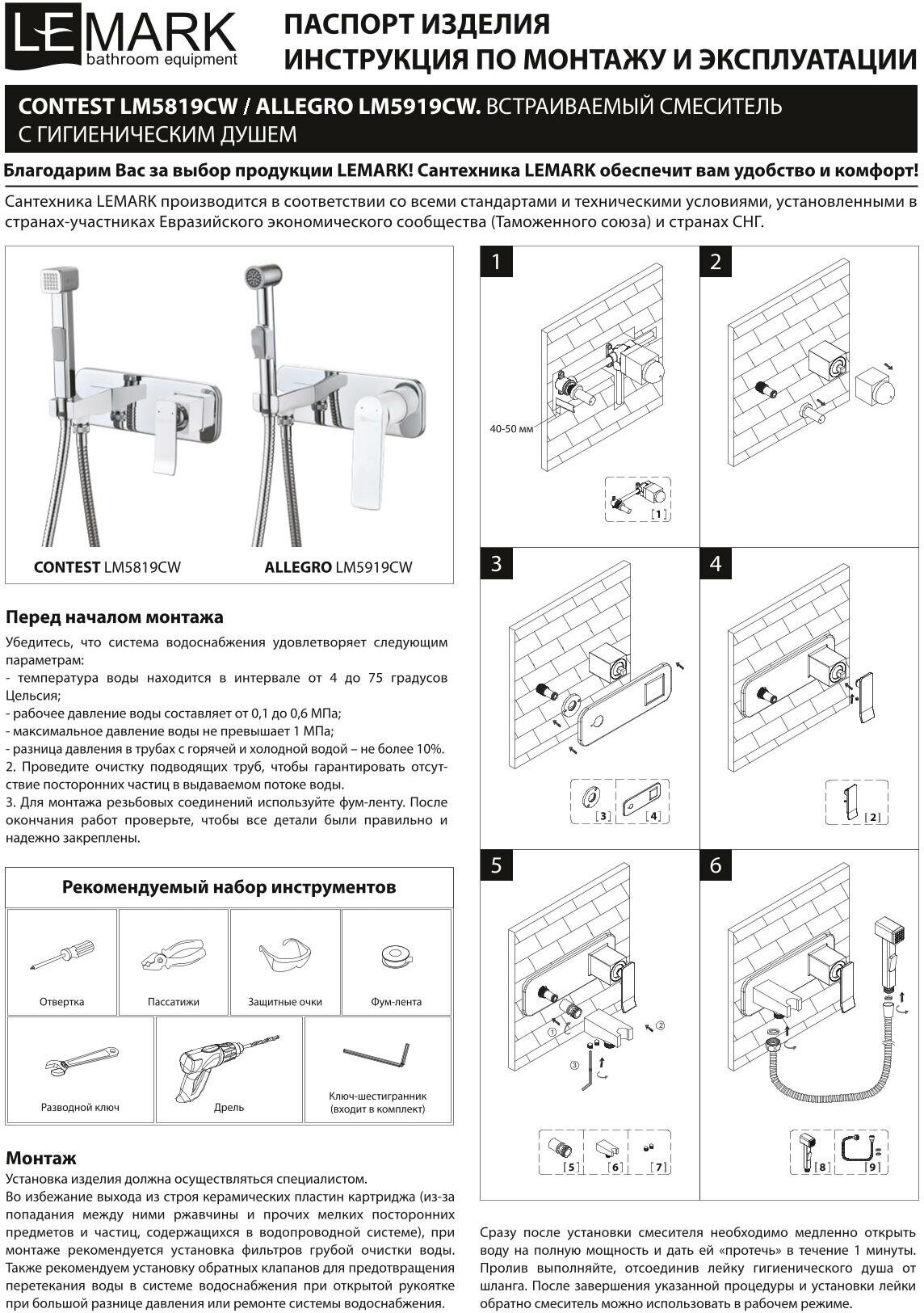 Гигиенический душ Lemark Contest LM5819CW, встраиваемый