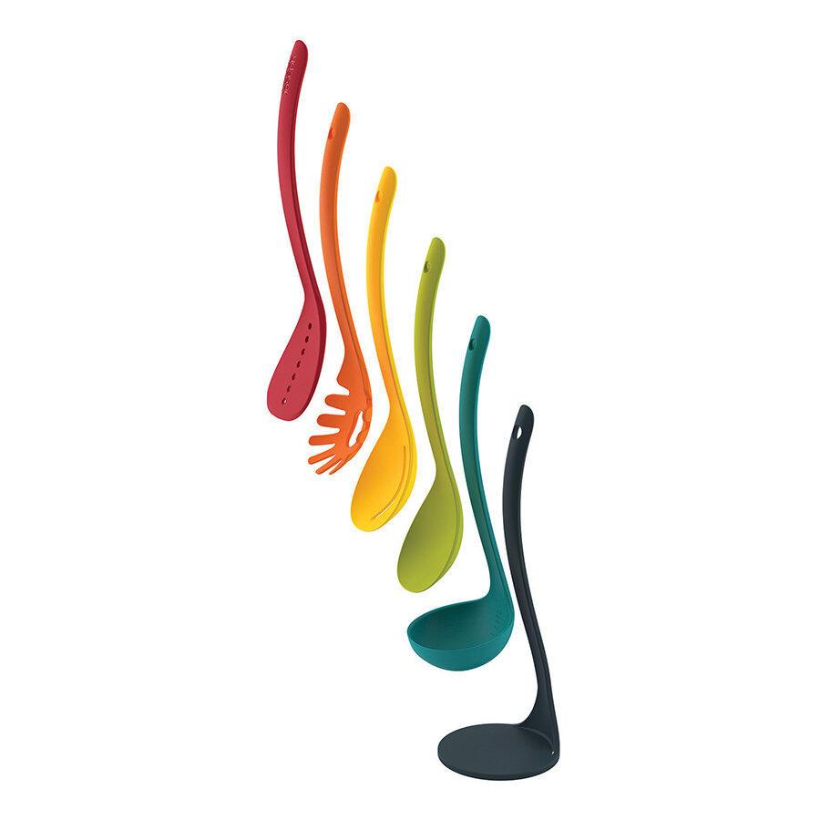 | Комплектация | половник, лопатка-шумовка, поварская ложка, ложка для спагетти, ложка-шумовка, магнитная подставка |