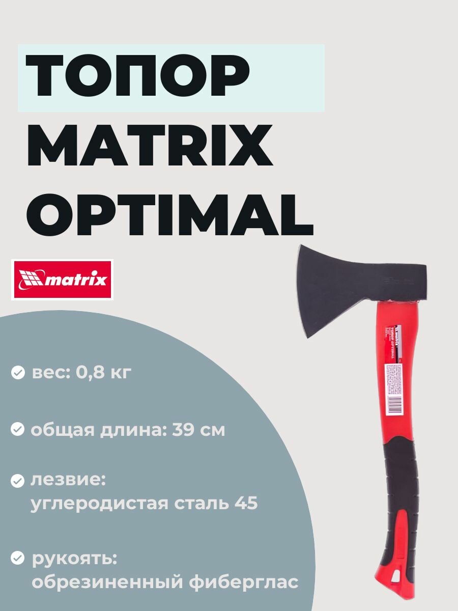 Топор MATRIX optimal 21651, 600 г, 390 мм, кованный, фибергласовое топорище