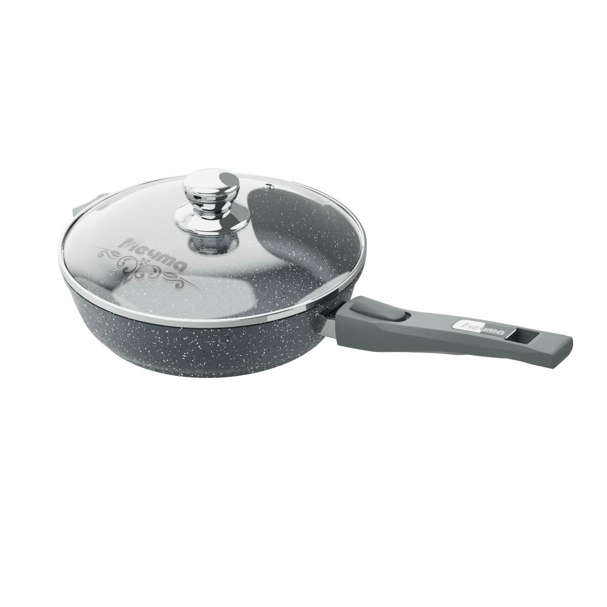 Сковорода с гранитным антипригарным покрытием крышкой и съемной ручкой 24 см Мечта