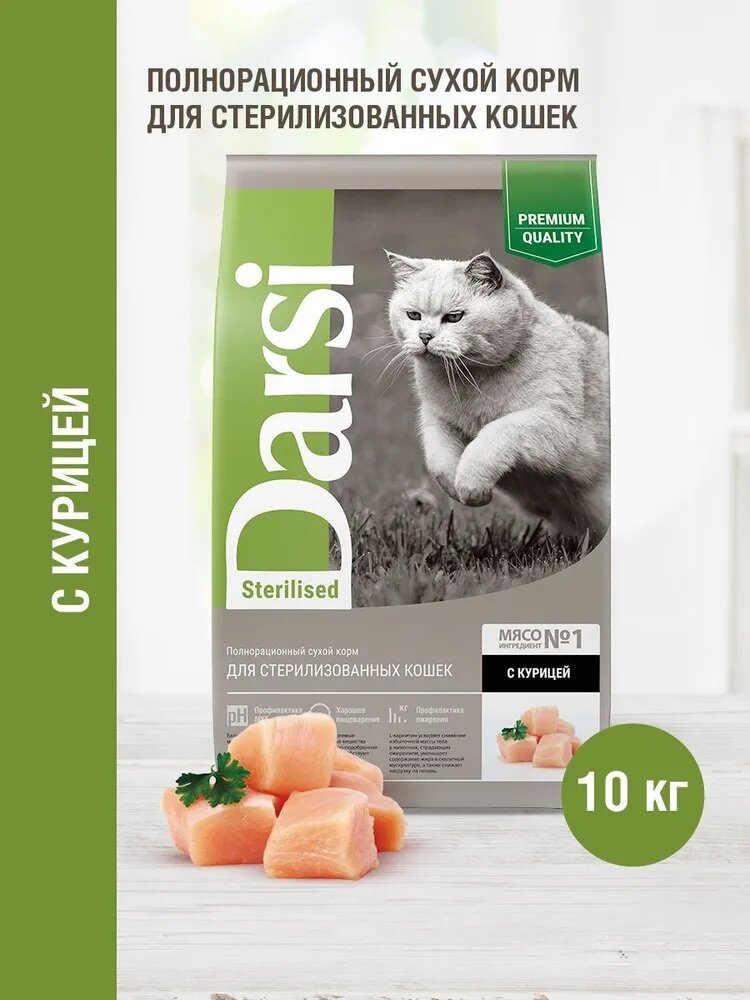 Корм Darsi для стерилизованных кошек и котов Курица, 10 кг