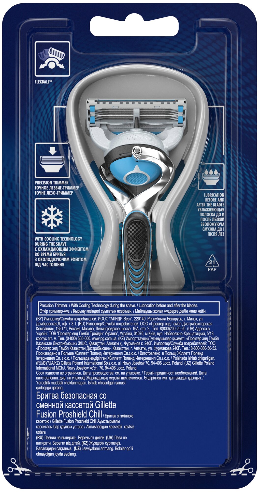 Многоразовый бритвенный станок Gillette Fusion5 Proshield Chill Flexball интересное: