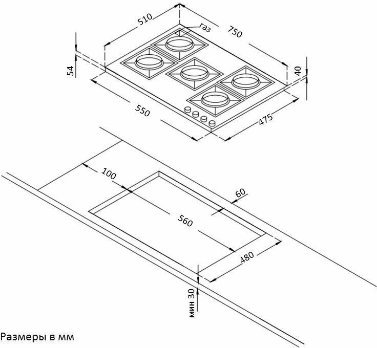 Встраиваемая газовая варочная панель Korting HG 765 CTX