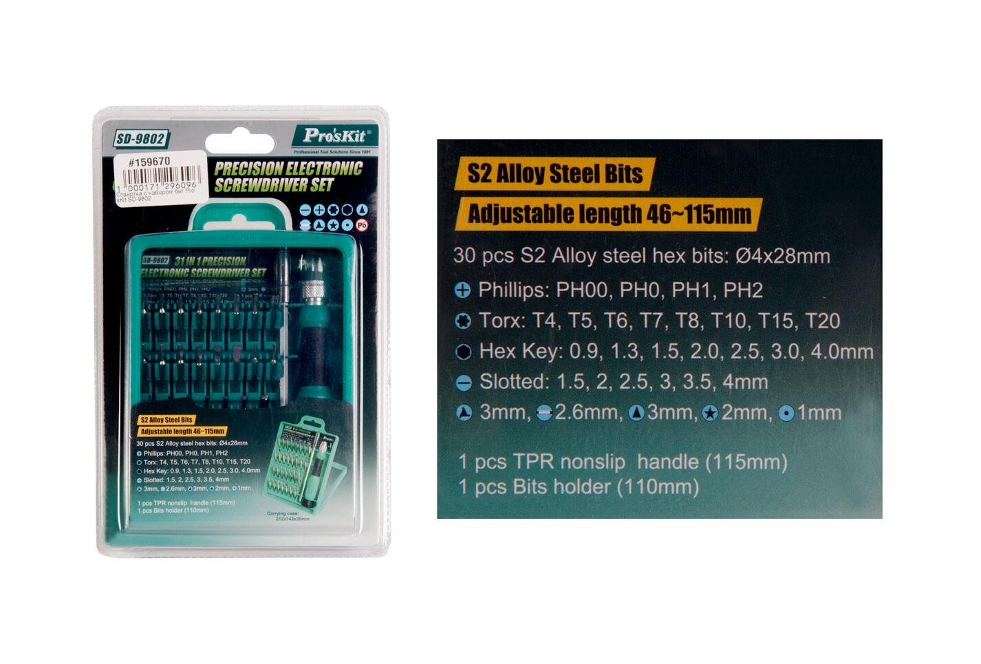 Отвертка со сменными битами PRO'SKIT SD-9802, прецизионная, 30 бит