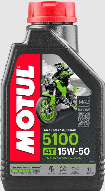 MOTUL 104080 Масло моторное для мотоциклов 15W50 MOTUL 1л полусинтетика 5100 ESTER 4T 1шт