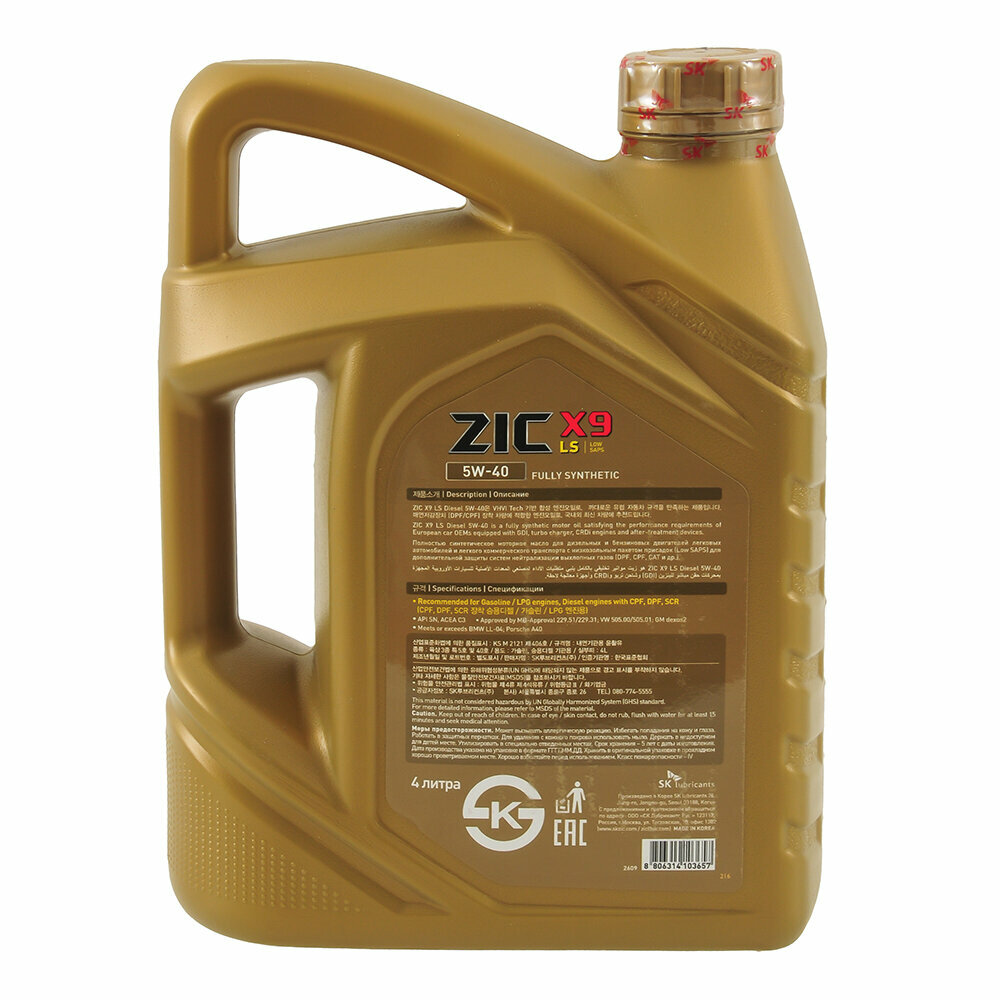 ZIC 162609 ZIC X9 LS DIESEL 5W40 (4L)_масло мотор.!синт.\API SN,ACEA,C3,MB 229.51,VW 505.00/505.01,GM dexos2