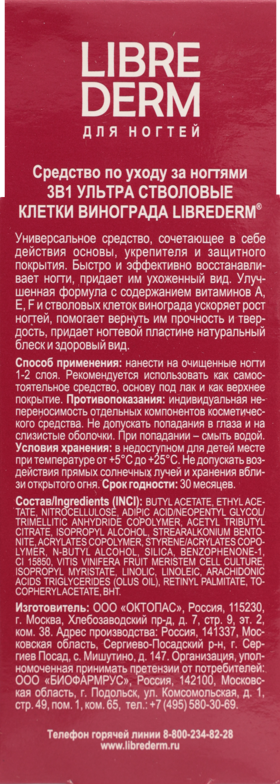 Лак для ногтей Librederm 3 в 1 Ультра Стволовые клетки винограда 10мл