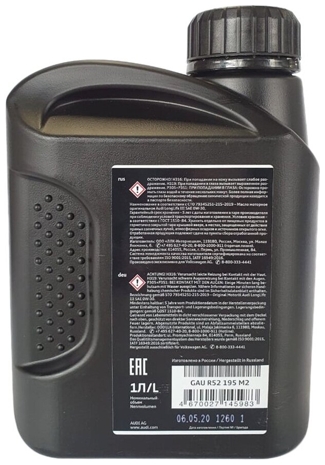 Масло моторное синтетическое AUDI LongLife III 0W30 1л VAG GAUR52195M2 | цена за 1 шт интересное: