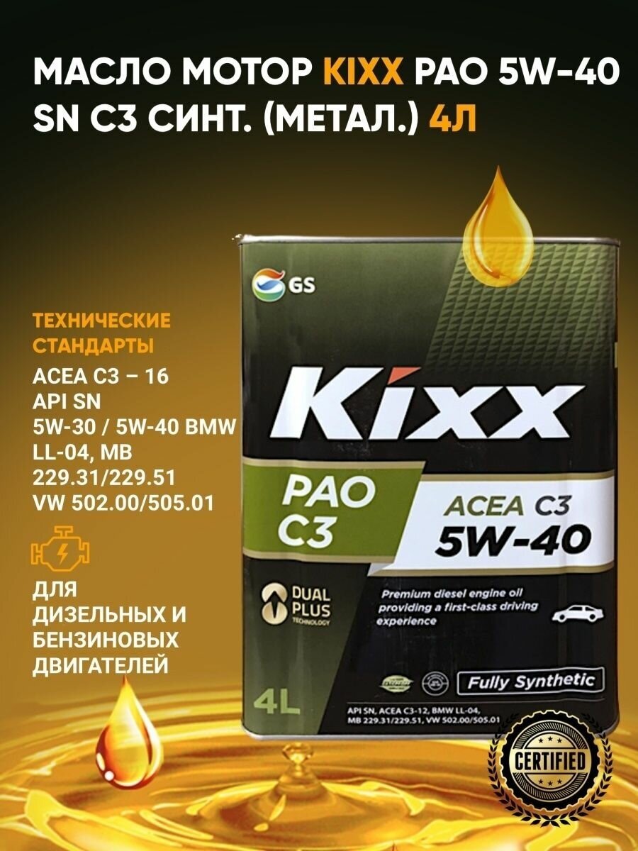 KIXX Kixx Pao 5w-40 Api Sn/Cf, Acea C3 - 1 Л.