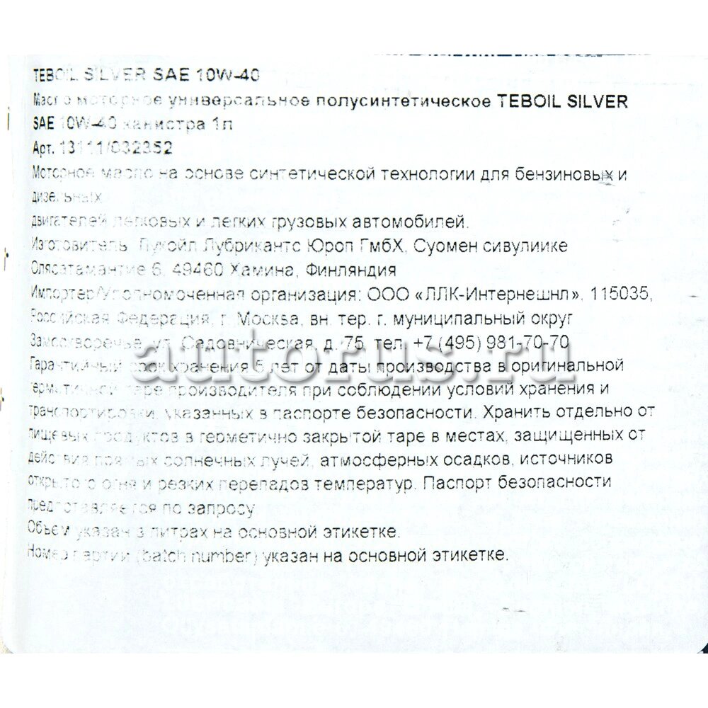 TEBOIL 13111 масо моторное TEBOIL SILVER 10W40 1