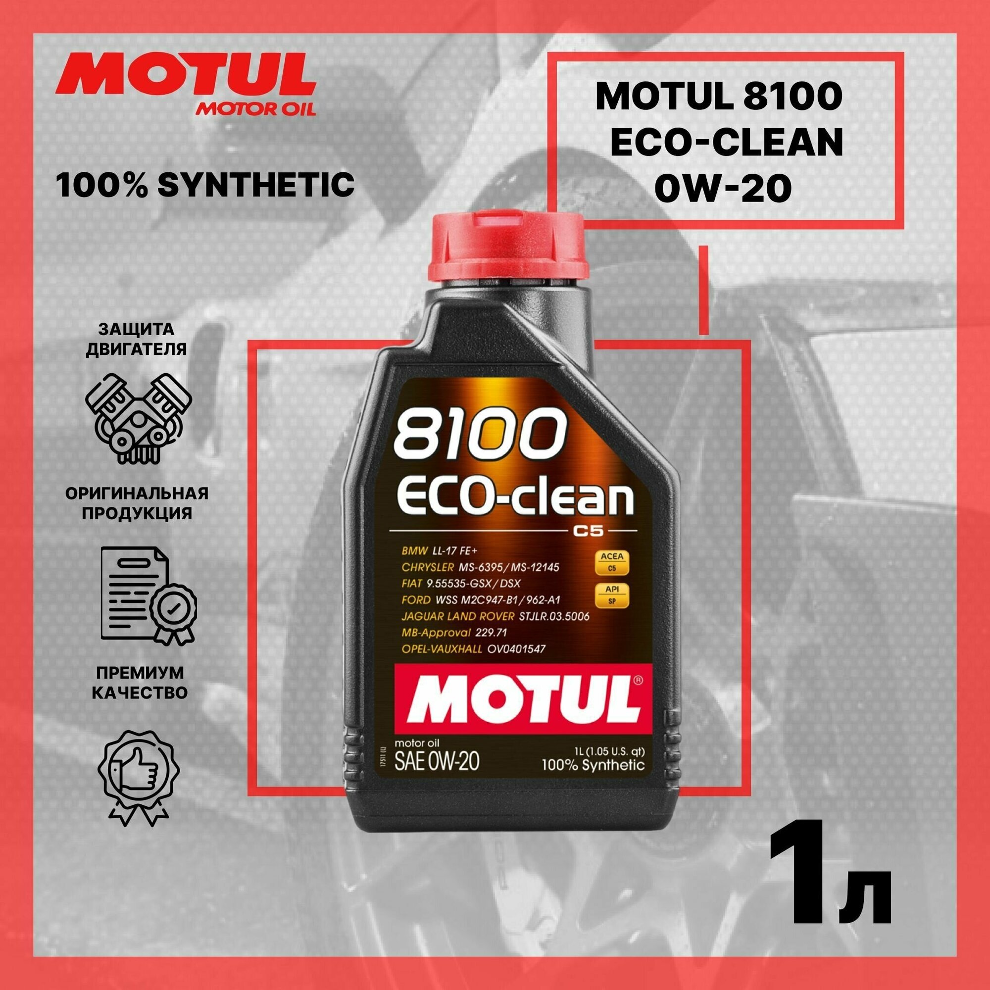 MOTUL 108813 Масло моторное Motul 8100 Eco-clean 0W-20 синтетическое 1 л 108813