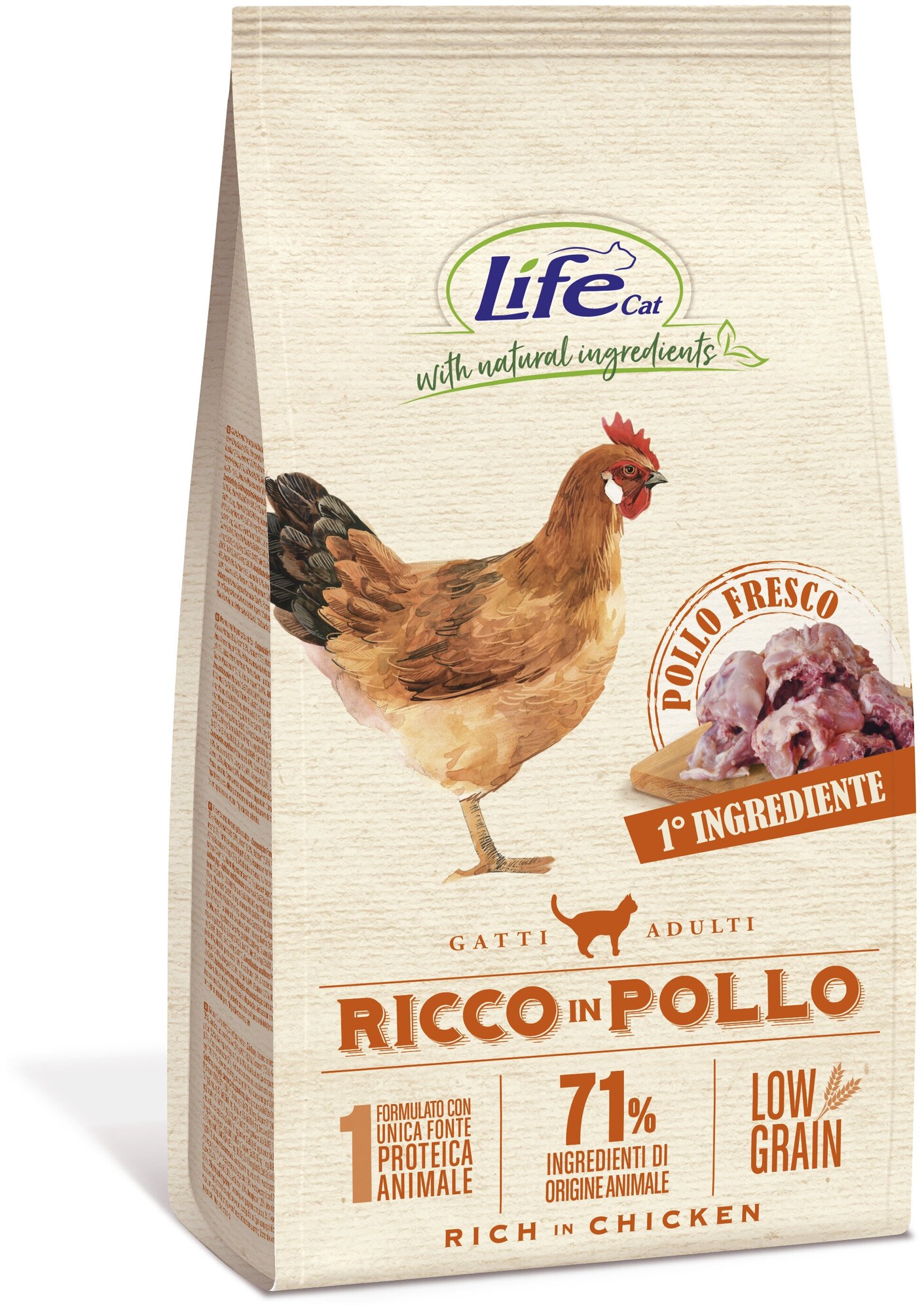 Корм Lifecat Adult Rich in chicken low grain 1,5кг с высоким содержанием свежей курицы низкозерновой для кошек