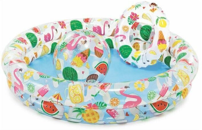 Intex Бассейн Ананасовый рисунок 132х28см + мяч 51см + круг 51см от 2 лет И59469