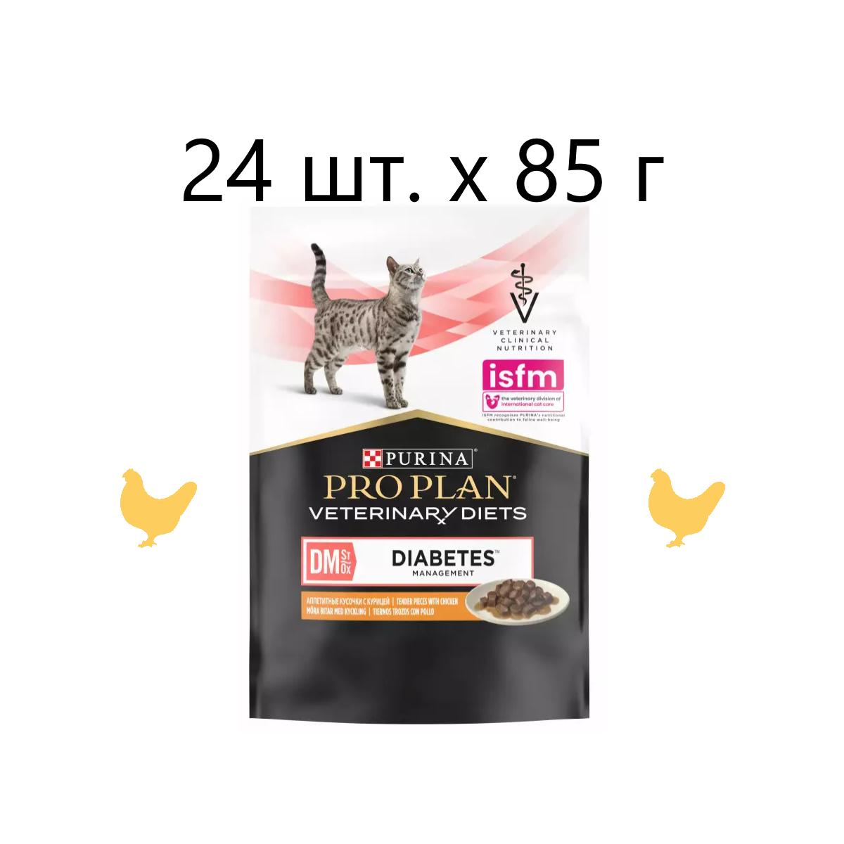 PRO PLAN VETERINARY DIETS DM ST/OX DIABETES для взр кошек при сахарном диабете с куриц пауч 85гр NEW 85 гр х 10 шт