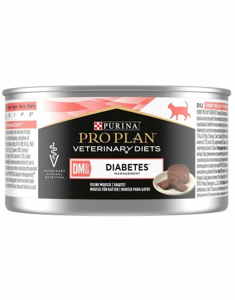 Влажный корм для кошек при диабете PRO PLAN VETERINARY DIETS DM St/Ox Diabetes Management паштет 24 шт.*195г
