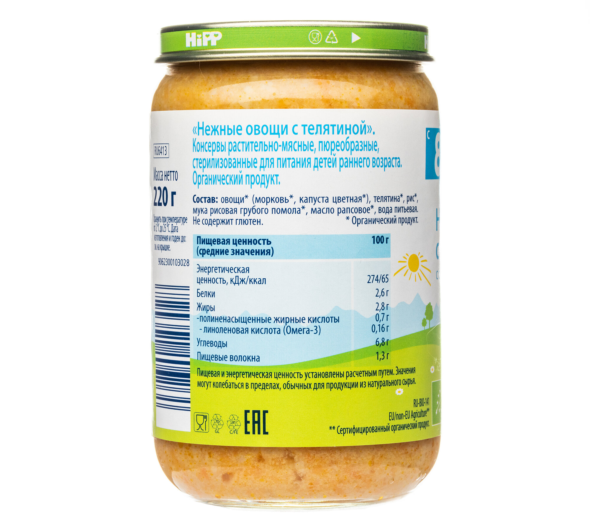 Пюре мясо-овощное детское HiPP "Нежные овощи с телятиной", с 8 месяцев, 190г, 6 шт. интересное:
