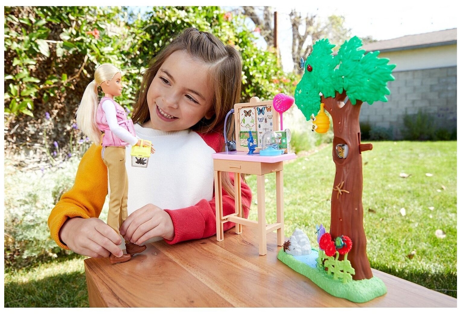 | Комплектация | кукла, насекомые (10 шт.), контейнеры (2 шт.), фотокамера, бинокль, сачок, лупа, микроскоп, журнал, улей, столик, дерево |