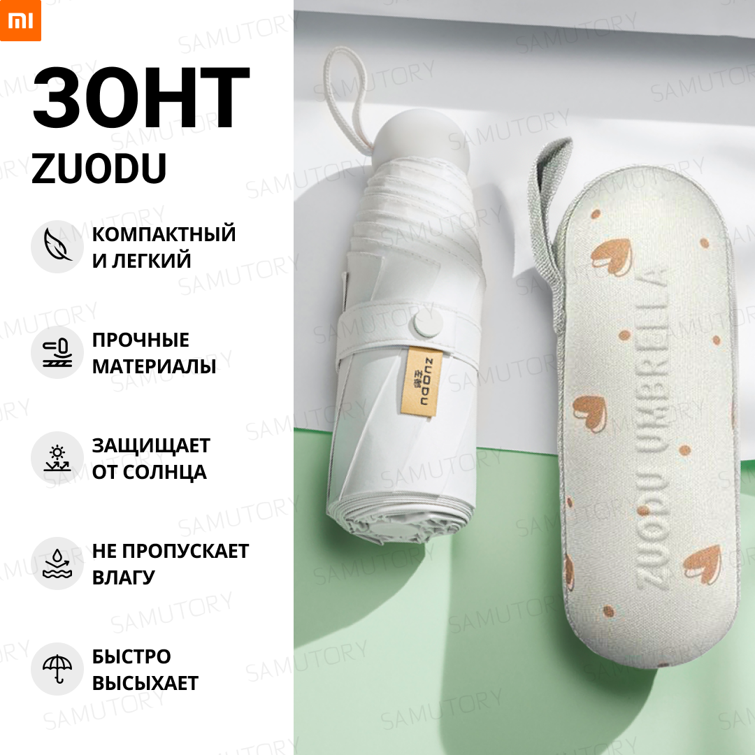 Мини-зонт Xiaomi ZUODU Capsule, механика, чехол в комплекте, белый