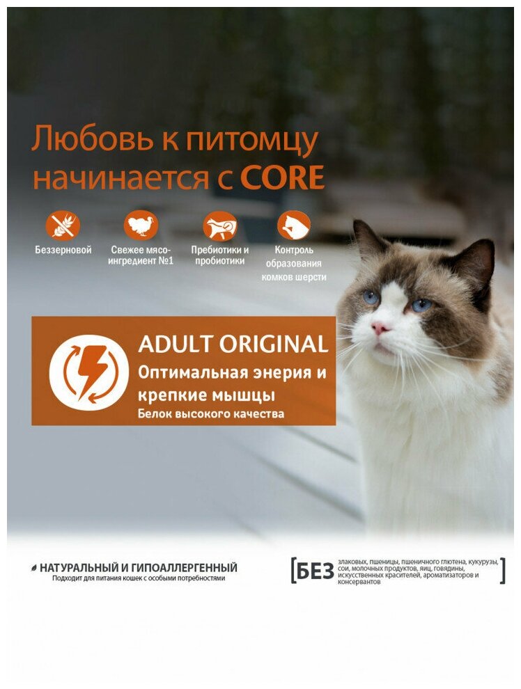 CORE ORIGINAL CAT ADULT беззерновой для взрослых кошек с индейкой и курицей (1,75 кг)