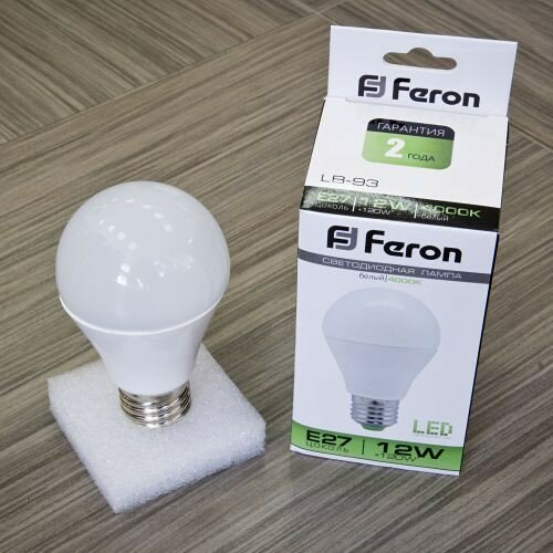 Feron LB-93 Лампа светодиодная , A60 (шар), 12W 230V E27 4000К, 1100Lm 1 шт.