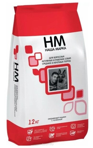 Наша Марка 1шт -12кг с телятиной сухой для активных и рабочих собак средних и крупных пород