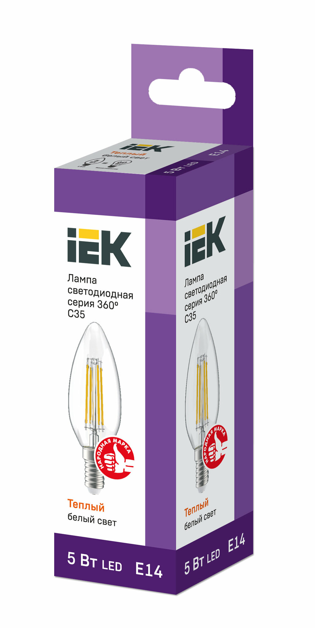 Лампа IEK LED свеча 5Вт, 230В, 3000К, цоколь Е14 360, Арт. LLF-C35-5-230-30-E14-CL
