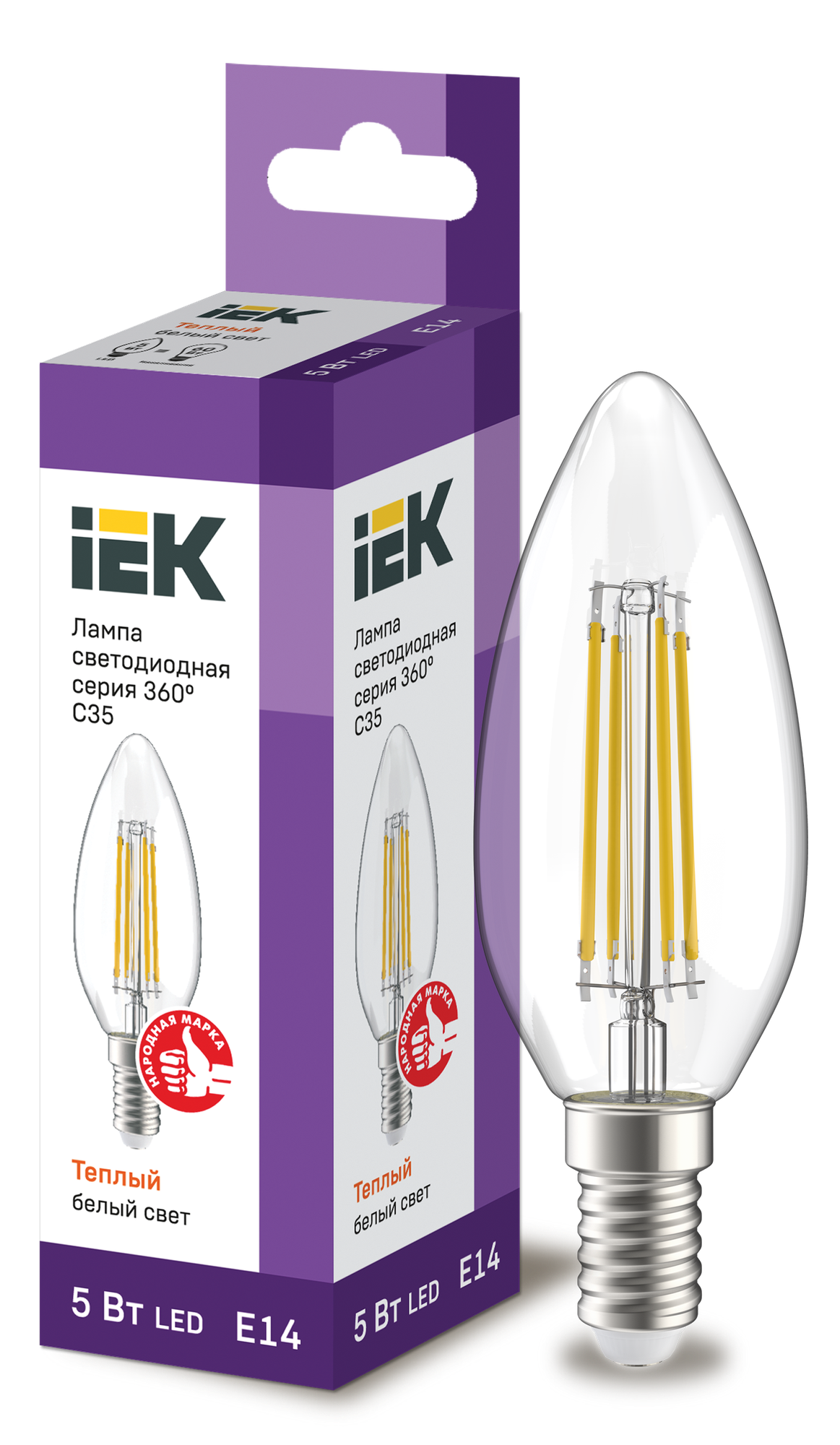 Лампа IEK серия 360, LED, C35, свеча, прозрачная, 5вт, 230В, 3000К, E14 LLF-C35-5-230-30-E14 -CL