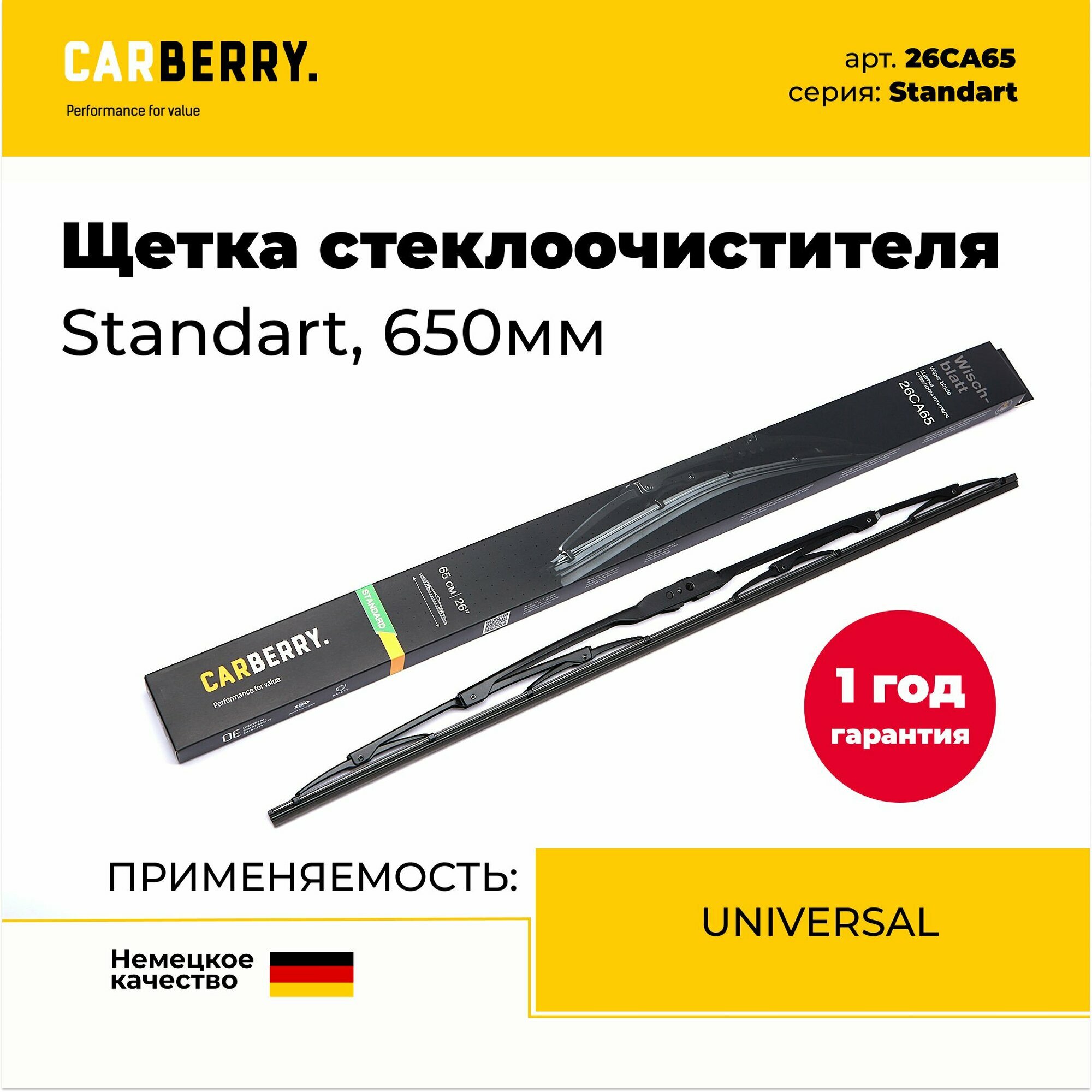 CARBERRY 26CA65 щетка стеклоочистителя STANDART 650ММ UNIVERSAL 1шт