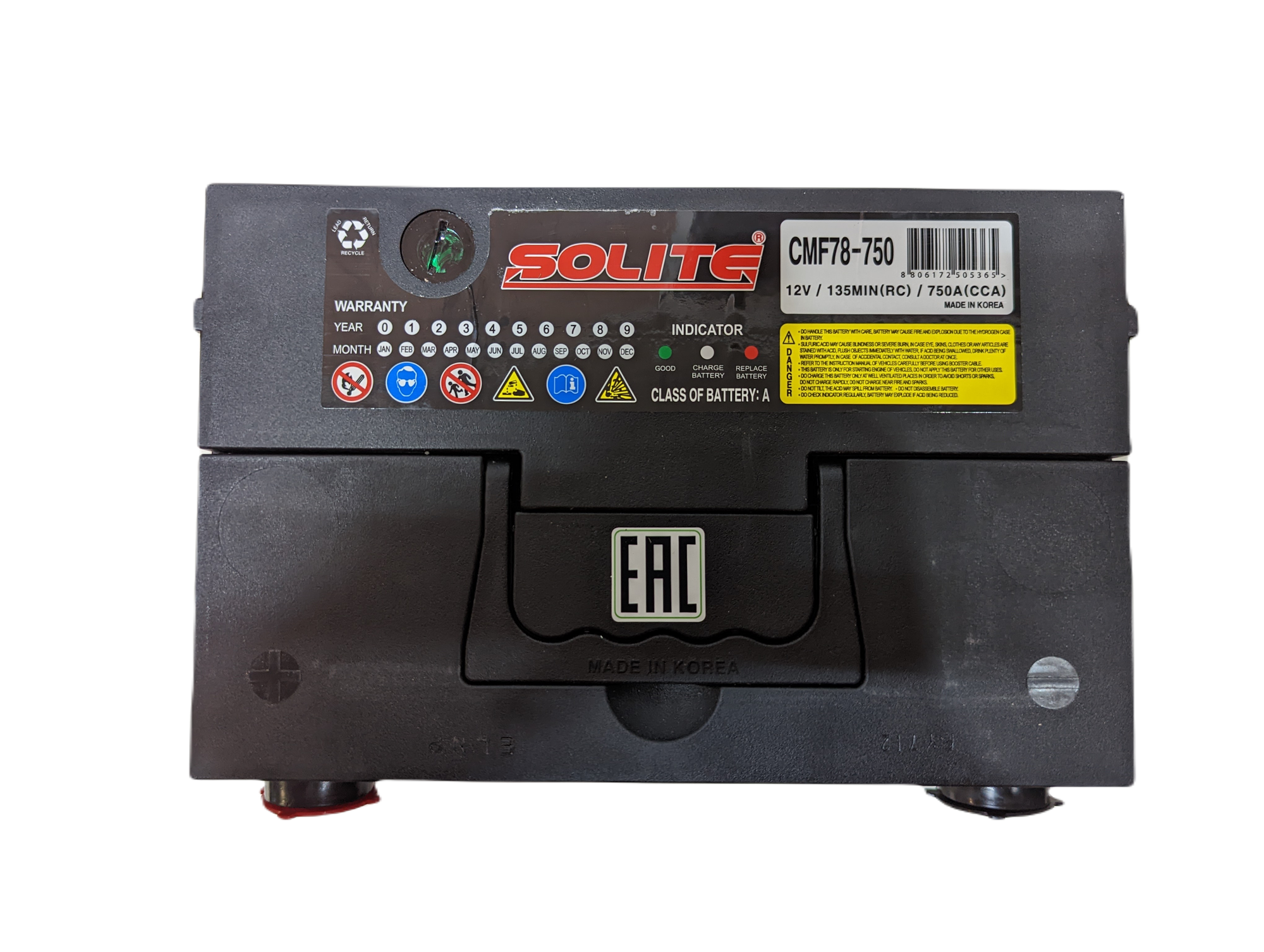 Аккумулятор Solite CMF 78-750 (винтовые, боковые клеммы) Южная Корея