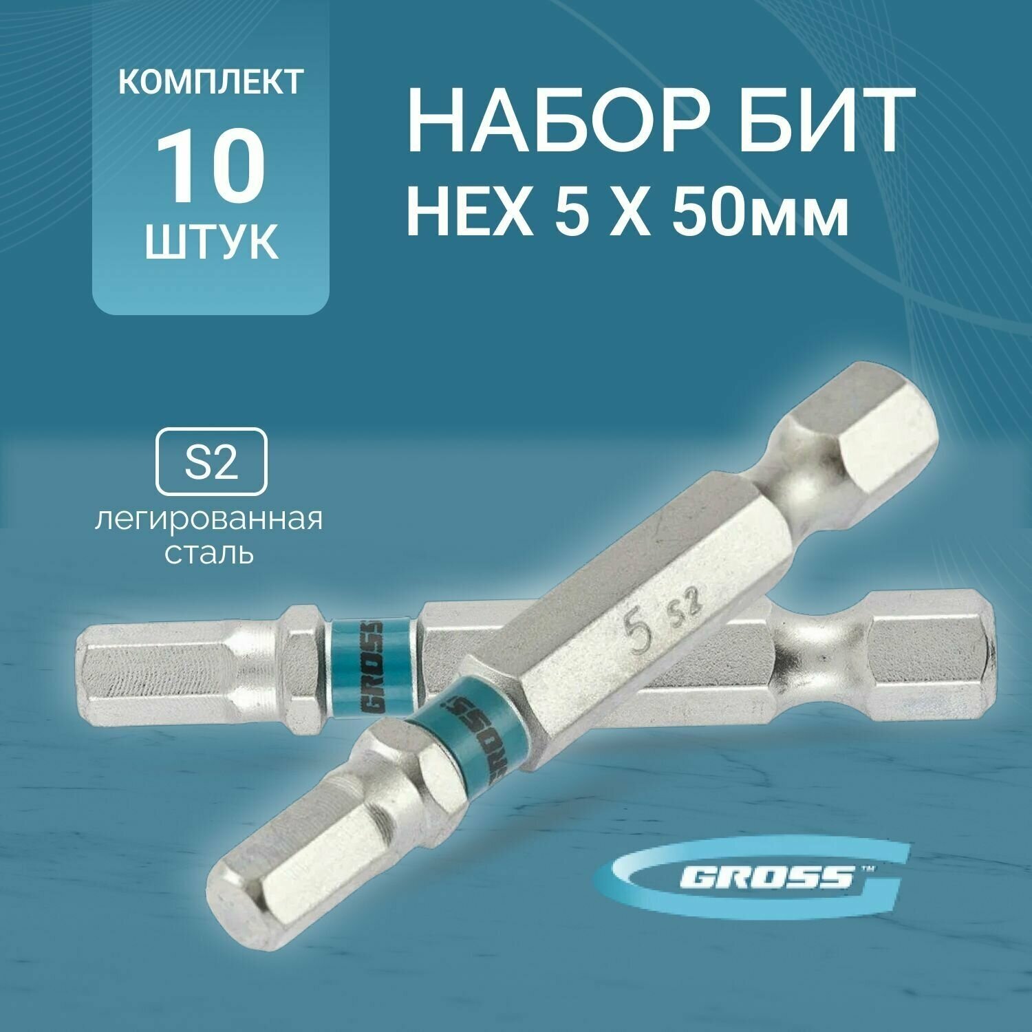 Набор бит HEX 5х50, сталь S2, 10 шт Gross [11464] интересное: