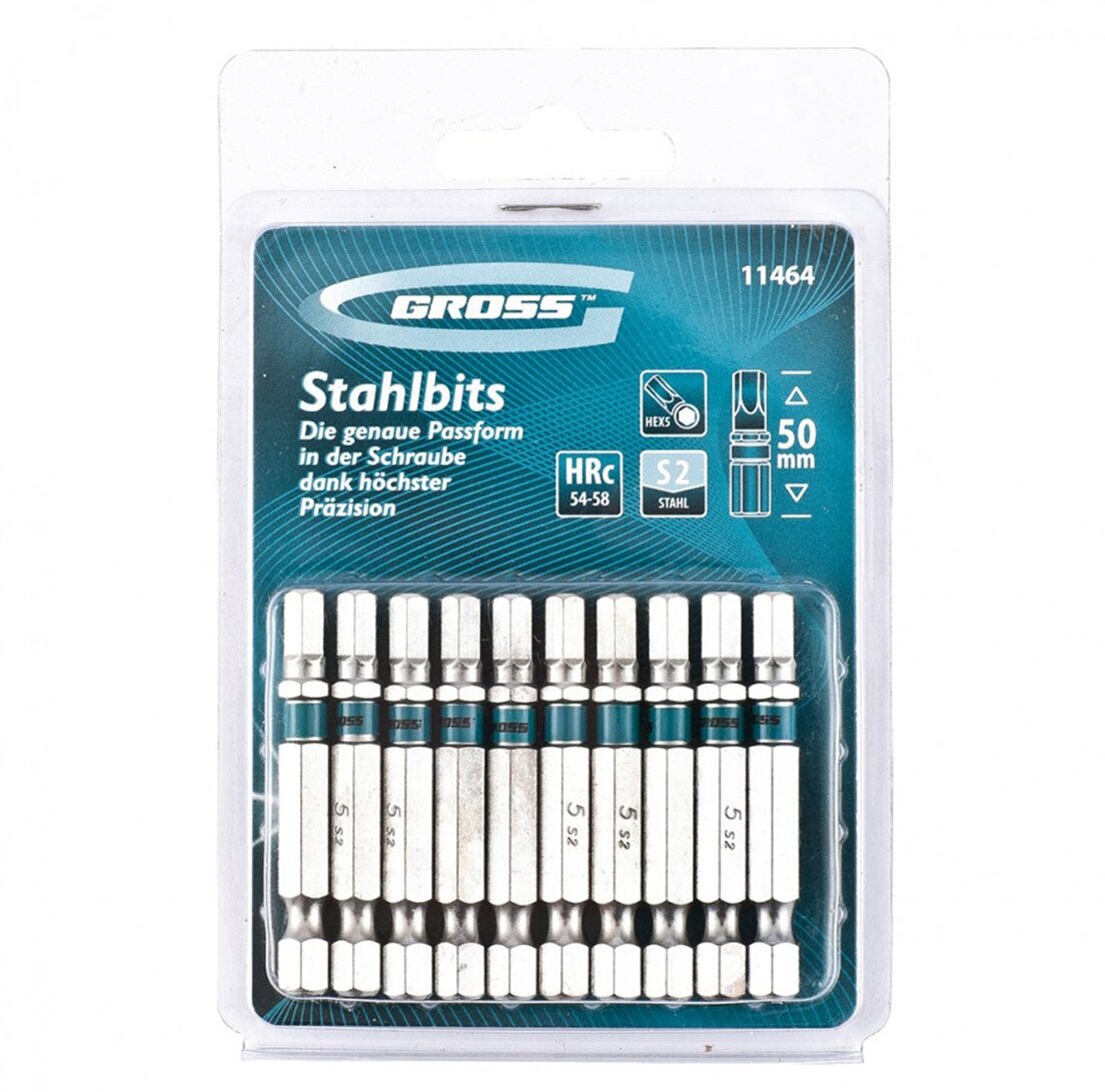 Набор бит HEX 5х50, сталь S2, 10 шт. Gross 11464