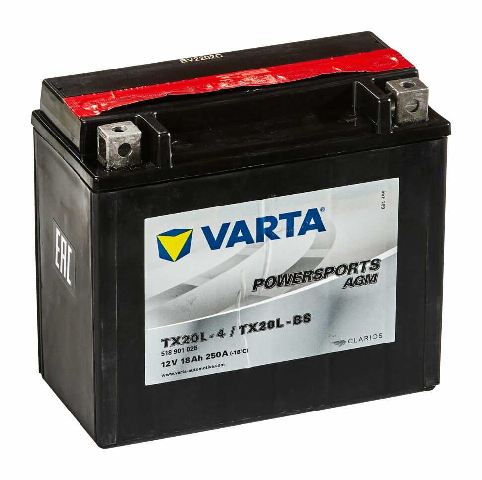 518902025_Аккумуляторная Батарея! Рус 18Ah 250A 177/88/156 Tx20-Bs Powersports Agm Moto Varta арт. 518902025